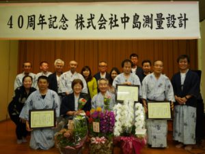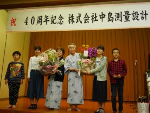 社長の創立当時のお話しや、永年勤続表彰、社長夫妻への花束贈呈などを行いました。