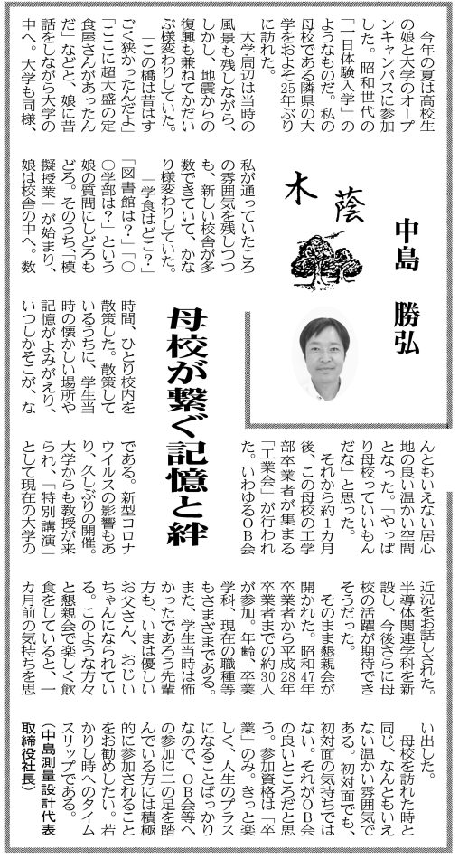 2023年9月27日の鹿児島建設新聞「木蔭」欄に、弊社代表の記事が掲載されました。