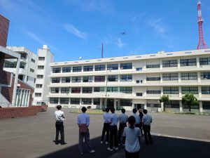 午後はドローンを実際に操縦していただきました。参加された高校生は、すぐに操縦に慣れたようで、ドローン資格取得の実技審査で課される課題飛行にも挑戦しました。