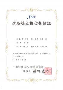 「道路橋点検士」に弊社より1名登録されました!
