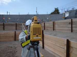 まだ、なにもない状況で基準点測量から始まり、